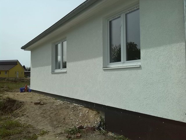 - Behandeln der Fassade mit Grünbelagsentferner und Reinigung mittels Hochdruckreiniger